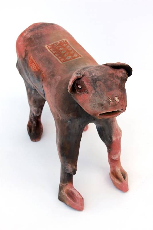 Previous Next The Work Previous work Next work Long Legged Red Desert Dog with blanket - toothless Pit Fired Smoke fired and burnished 30 x 35 x 13 cms Ref: 366852 Enquire about this item